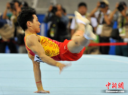 中新網(wǎng)11月15日電 在15日下午剛剛結(jié)束的廣州亞運(yùn)會(huì)體操男子全能決賽中,中國選手滕海濱表現(xiàn)完美,在六個(gè)單項(xiàng)比賽中一路領(lǐng)先并最終以91.100分的高分獲得金牌,這也是中國隊(duì)在亞運(yùn)會(huì)體操男子個(gè)人全能項(xiàng)目上的“九連冠”。