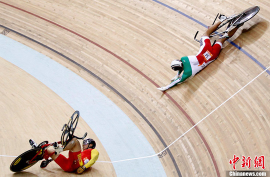 中新網(wǎng)廣州11月17日電 (記者 張子揚)17日的亞運會自行車凱琳賽場上再次發(fā)生慘烈碰撞,原本最具奪冠實力的中國選手張磊在沖刺階段與馬來西亞車手發(fā)生身體接觸并被擠倒,躲閃不及伊朗車手默哈默德迎頭撞上,現(xiàn)場一片嘩然。張磊在經(jīng)過醫(yī)生處理后站了起來,腿部外側(cè)被刮掉一塊皮的他,三冠王的夢想也被就此撞飛。
