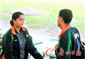 拉賈庫瑪里還有另外一個大問題,那就是無人指導(dǎo)!盀榱四艿玫揭恍┙叹氃诳臻e時間的指點,我經(jīng)常去離家200多公里的射擊館訓(xùn)練,每次去都要花兩三個小時!彼f,“請一名教練的費用高昂,我負(fù)擔(dān)不起!币虼耍Z庫瑪里非常珍惜每一次的學(xué)藝機(jī)會,在昨天比賽后隊友的教練路過時,她趕緊請人家給予點撥。