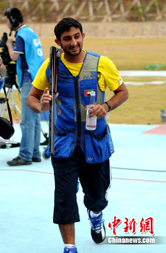 中新網(wǎng)廣州11月21日電 題:阿聯(lián)酋王子亞運(yùn)會(huì)奪銀 不愛說(shuō)話槍法奇準(zhǔn)