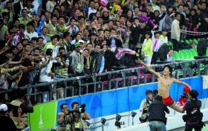 撞線之后,劉翔拉著史東鵬繞場(chǎng)致意,并且一起把上衣拋向了看臺(tái),可鏡頭卻一直將大史撇在外面。賽后受訪時(shí),大史突然把一件白色T恤套在了劉翔頭上,才為自己“爭(zhēng)取”到了一些發(fā)言機(jī)會(huì)。但穿好衣服后,劉翔語(yǔ)出驚人:“我并沒(méi)有恢復(fù)到最好的狀態(tài),今天有所保留,我還可以繼續(xù)沖一沖——明年的比賽,還有倫敦奧運(yùn)會(huì)……”