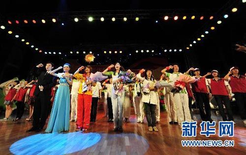 10月23日晚,華南師范大學(xué)舉行2010廣州亞(殘)運(yùn)會(huì)志愿者出征誓師儀式暨2010年迎新生文藝晚會(huì),該校1860名亞(殘)運(yùn)會(huì)志愿者代表參加晚會(huì)。身為廣州亞運(yùn)會(huì)志愿者形象大使的羽毛球名將謝杏芳來(lái)到活動(dòng)現(xiàn)場(chǎng),帶領(lǐng)大家共同宣誓。