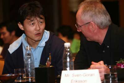趁著本周沒有比賽,昨天孫繼海和英超曼城主帥埃里克森亮相上海,參加搜狐與PG(超級(jí)足球公司)的合作活動(dòng)。曼城主帥埃里克森表示,曼城有望在明年五六月份來中國。