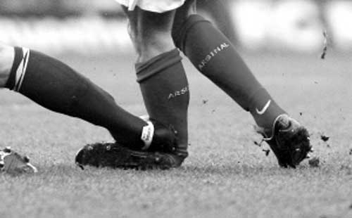 本場比賽開場僅兩分多鐘,恐怖的一幕就上演,愛德華多前場接球,伯明翰中衛(wèi)馬丁·泰勒從正面下腳飛鏟,重重踢在愛德華多的小腿上,阿森納九號應(yīng)聲倒地。這個犯規(guī)非常嚴(yán)重,主裁迪恩直接將泰勒罰下場去。愛德華多倒在地上哀嚎著抱著左腿,明顯可以看出他的小腿已經(jīng)折斷。愛德華多情況非常嚴(yán)重,在地上一趟就是五分鐘,而且不久就陷入了昏迷。為了讓他不至于發(fā)生更大意外,阿森納隊醫(yī)甚至用上了供氧設(shè)施,隨后又將他身體側(cè)轉(zhuǎn)固定在擔(dān)架上后才將其抬下場去。