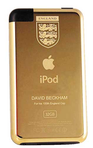 這款個性化iPod Touch的內存容量為32GB,機身鍍金,背部刻上了“大衛(wèi)·貝克漢姆,代表國家隊出場比賽100場”的字樣,非?犰拧