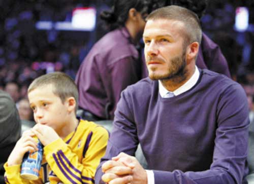 昨天凌晨,湖人在主場以128∶114擊敗掘金,取得季后賽開門紅。湖人隊比賽的座上客貝克漢姆當(dāng)然也沒錯過這場精彩對決,身穿藍色毛衣的小貝攜兩愛兒來到斯坦普斯球館現(xiàn)場觀戰(zhàn),也愉快地見證了自己支持的球隊大獲全勝。