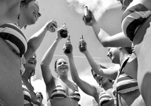 女球迷不僅看球看帥哥,還要搶歐洲杯的風(fēng)頭。比賽期間一場“無上裝女足比賽”在維也納多瑙河邊舉行,美女們在身上彩繪了兩隊的球衣。很多男球迷看這個比看歐洲杯興趣還大:“如果因為看這個而趕不上歐洲杯,那也沒什么!”