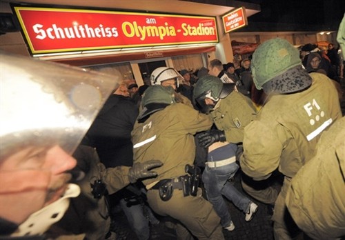 英格蘭隊客場挑戰(zhàn)老對手德國隊,眾多英格蘭球迷不遠長途跋涉,跨越海峽來到柏林。賽后,英格蘭足球流氓開始聚眾斗毆并引發(fā)騷亂。截止目前,已經(jīng)有數(shù)名足球流氓被警方逮捕。