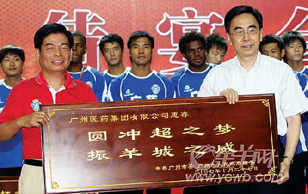 廣藥隊(duì)沖超成功,廣州市政府重獎(jiǎng)300萬(wàn)元!昨(27日)晚,廣州市人民政府在白云國(guó)際會(huì)議中心為廣藥隊(duì)舉行盛大的慶功會(huì)。會(huì)上,廣州市副市長(zhǎng)許瑞生代表市政府向廣藥隊(duì)頒發(fā)300萬(wàn)元。