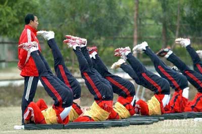 由于即將迎來同黎巴嫩隊的熱身賽,國足今天訓練主要也按照以往比賽前的安排來進行——上午隊員在酒店內休息,下午進行一次訓練。在今天的訓練中,三名國奧回歸的球員李瑋峰、杜震宇和孫祥都出現在了主力陣容一方,而從國奧上調國足的周海濱則被分在了替補一方。
