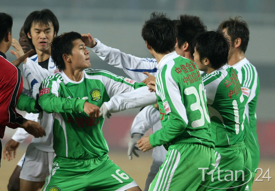 2比2本應(yīng)和局收?qǐng),但京津兩?duì)賽后的斗毆卻讓平淡的比分不再平淡。如果說(shuō)整個(gè)沖突的導(dǎo)火索是裁判的判罰的話,那么賽后斗毆的捻子則是譚望嵩與郭輝的身體沖撞,正是他們兩人的沖突使得整個(gè)體育場(chǎng)變成了斗獸場(chǎng)。賽后,平靜下來(lái)的郭輝表示,他與譚望嵩沒(méi)有什么恩怨,但是球場(chǎng)上譚望嵩說(shuō)“弄死他”讓他覺(jué)得這口氣實(shí)在咽不下去。
