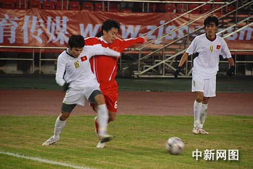 由于在預(yù)選賽首場(chǎng)比賽中客場(chǎng)輸給敘利亞,國(guó)足已經(jīng)坐上了火山口。反觀對(duì)手越南隊(duì)雖然主力前鋒缺陣,但士氣正旺的他們?cè)诳蛨?chǎng)也表現(xiàn)出了在國(guó)足身上拿分的想法。不過比賽開始后僅僅一分鐘,國(guó)足就獲得一個(gè)角球機(jī)會(huì),郜林接蒿俊閔罰球頭球破門,為中國(guó)隊(duì)先拔頭籌,中國(guó)隊(duì)1-0領(lǐng)先越南。第8分鐘國(guó)足錯(cuò)過擴(kuò)大比分的機(jī)會(huì),郜林將一次單刀赴會(huì)浪費(fèi)。三分鐘后,越南隊(duì)打出漂亮配合,由阮宇峰小角度推射攻破了國(guó)足大門,將比分扳為1-1平。