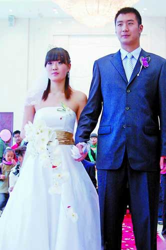昨天,兩位河南的籃球明星在黃河迎賓館喜結連理,新郎是原國家隊隊員薛玉洋(現在新疆廣匯隊打球),新娘是河南女籃的程誠。兩人原計劃在2008年8月8日奧運會開幕當天大婚,由于訓練、比賽任務繁重,兩人只好提前趁著聯賽間隙把終身大事給辦了。