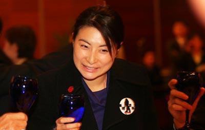 9日晚,郭晶晶出席中日青年友好訪日團歡送會,圖為郭晶晶與日本友好人員舉杯共飲。