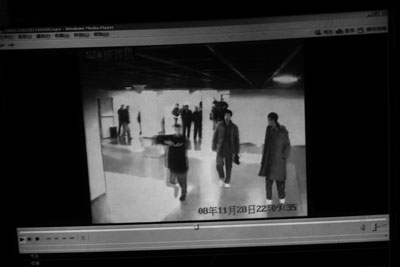 22點(diǎn)07分 劉煒第一個(gè)從客隊(duì)休息室出來,徑直向攝像頭方向走來,他的身后陸續(xù)跟出了蔡亮等7到8個(gè)上海隊(duì)隊(duì)員,劉煒(注:當(dāng)時(shí)劉煒第一個(gè)走出了攝像頭的監(jiān)控范圍)張望一會后,便返回了客隊(duì)休息室,跟劉煒出來的隊(duì)員也往回撤了一段距離,剛好正正的站在攝像頭下面。