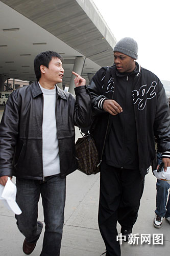 12日下午,前NBA休斯敦火箭隊(duì)球星邦奇•威爾斯飛抵太原。作 者:張?jiān)?br>