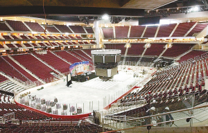 火箭的比賽不是在木地板上進(jìn)行的嗎?約什得意地笑了,“隱藏在255塊木地板下面,是一整塊冰!奔s什說(shuō)完,立馬摳起一塊地板,讓記者親手觸摸到足足有1英寸厚的冰層。原來(lái),豐田中心不單是火箭的主場(chǎng),同時(shí)也是休斯敦冰球隊(duì)的主場(chǎng)。每當(dāng)火箭比賽前,豐田中心工作人員就會(huì)在冰面上鋪起木地板。當(dāng)冰球隊(duì)比賽前,木地板會(huì)被撤走。由于美國(guó)的冰球賽季幾乎和NBA賽季起止時(shí)間一樣,因此火箭隊(duì)整個(gè)賽季其實(shí)都是在冰面上比賽的。“更換地板的過(guò)程需要4小時(shí)到6小時(shí),我們?yōu)榈匕寰幜颂?hào)的,可以更換得很快!奔s什說(shuō),由于常常是在冰球比賽第二天就會(huì)進(jìn)行籃球比賽,因此工作人員會(huì)通宵達(dá)旦地工作,以保證籃球隊(duì)第二天早上的訓(xùn)練。