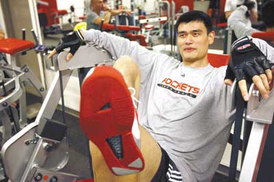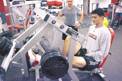 隨著傷勢逐漸好轉(zhuǎn),姚明已開始進(jìn)行恢復(fù)性訓(xùn)練。目前姚明每天都會將很大精力投入在力量器械上,從而保證缺陣期間的各項力量指數(shù)不至于下降,而腿部力量訓(xùn)練則是姚明訓(xùn)練中的重點。