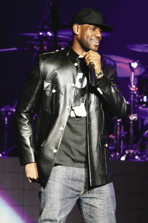 在離美國(guó)總統(tǒng)大選(11月4日)還有5天的時(shí)候,NBA騎士隊(duì)球星勒布朗·詹姆斯與美國(guó)著名說(shuō)唱歌手Jay·Z一同出席了名為“最后的選擇”音樂(lè)會(huì),為美國(guó)民主黨候選人巴拉克·奧巴馬拉票。當(dāng)晚,“小皇帝”一襲深色緊身衣外加黑色皮夾克外套,頭戴鴨舌帽,搖身一變成為說(shuō)唱歌手,與好友Jay·Z一并邊唱邊跳,臺(tái)型十足。