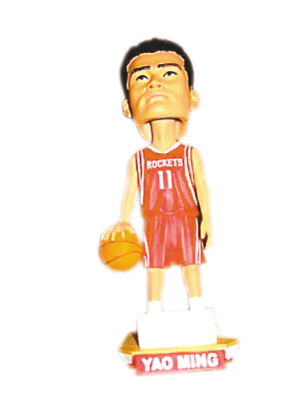 賽后,姚明得到一箱自己的搖頭娃娃。見蘭德里看得眼饞,姚明笑著吆喝:“100美元一個!