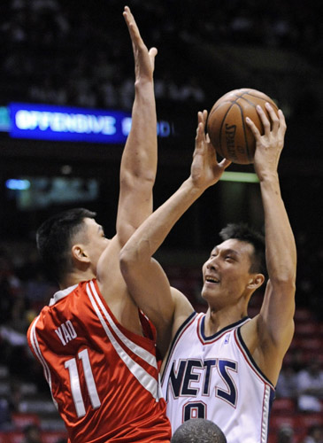 姚明易建聯(lián)在比賽中對位單打。