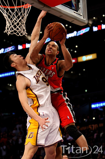 拉德馬諾維奇投籃不中,開(kāi)拓者發(fā)動(dòng)快攻。孫悅積極回防,試圖跳起封蓋貝勒斯的反擊。不過(guò)這位今年11號(hào)秀在孫悅面前表演了一個(gè)拉桿上籃,躲過(guò)了他的防守,造成了孫悅的犯規(guī)。