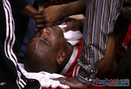 火箭今天試圖先打開外線,迫使對方擴大防守范圍之后,再主打姚明。比賽從一開始就進入白熱化,雙方你來我往,場面爭奪相當激烈。距離第一節(jié)比賽結(jié)束還剩1分17秒,穆大叔在和奧登的一次拼搶籃板過程中突然倒地,痛苦的捂住左膝趟在地上。