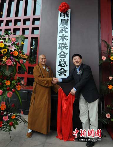 在掛牌儀式上,中國佛教協(xié)會副會長、四川省佛教協(xié)會會長、峨眉山佛教協(xié)會會長、峨眉武術(shù)聯(lián)合總會名譽會長釋永壽說,峨眉武術(shù)聯(lián)合總會將在大佛禪院建立峨眉武術(shù)祖師殿、陳列室、研究及培訓(xùn)機構(gòu),為天下峨眉武術(shù)愛好者建立一個心靈家園、修行習(xí)武的中心、認祖歸宗的吉祥地,使峨眉武術(shù)更快、更好地得到發(fā)展,為構(gòu)建當(dāng)代中國和諧社會服務(wù),為繼承和弘揚中華武術(shù)作出貢獻,譜寫出新時代峨眉武術(shù)的華彩樂章。