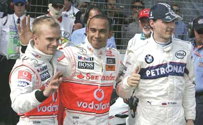 “我可以戰(zhàn)勝任何人!”現(xiàn)在看來(lái),漢密爾頓的自信多少有些道理,在昨日進(jìn)行的F1墨爾本站的排位賽中,英國(guó)黑小伙延續(xù)了去年的強(qiáng)勢(shì)表現(xiàn),以1分26秒714攫取桿位,寶馬賽車(chē)庫(kù)比卡和邁凱倫的科瓦萊寧分列二三位。賽前大熱的法拉利表現(xiàn)欠佳,馬薩排位第四,更荒唐的是衛(wèi)冕冠軍萊庫(kù)寧竟然中途退出。