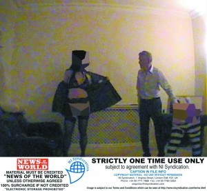 已曝光的圖片和視頻顯示,莫斯利打扮成一位納粹軍官,而現(xiàn)場環(huán)境有意模仿二戰(zhàn)時的集中營,妓女們或穿著猶太人、德國獄卒的服裝,或赤身裸體趴在莫斯利身邊,后者則開始審判“犯人”,并手持長鞭抽打,每打一下莫斯利的嘴里還念念有詞,妓女們也非常配合,按莫斯利要求在他用德語咒罵時仍面帶笑容。莫斯利對這種角色扮演游戲顯然愛不釋手,看到妓女們的反應(yīng)后老頭子樂不可支,不住興奮叫喊,而后他反要求5女將自己捆綁起來鞭打。