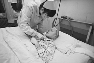 自12月8日被長箭射入腦部后,經(jīng)過六天的留院觀察,吉林小男孩小冬已經(jīng)成功渡過危險期。在鏡頭面前,小冬不僅能夠正常交談,還可以下床了。昨天,他第一次離開病床,在護士的幫助下站在了病房地面上。