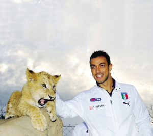 6月15日,意大利憑借羅西的梅開二度和德羅西的進球3比1戰(zhàn)勝了美國。在贏得了首場比賽后,為了更好地認識和了解南非,意大利國家隊放假半天,全隊前往位于約翰內(nèi)斯堡的獅子野生動物園參觀。不少球員都是第一次見到這些兇猛的動物并與其親密接觸,大家紛紛掏出手機與動物們合影留念。在這次游園中,一只雪獅成了意大利球員的最愛,卡納瓦羅、贊布羅塔、夸利亞雷拉以及羅西等球員都對他愛不釋手,而主帥里皮則似乎偏愛長頸鹿,他還親自拿飼料喂了一次長頸鹿。