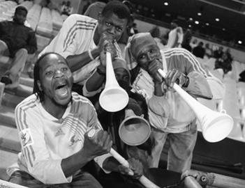 從球場(chǎng)外到看臺(tái),南非球迷似乎習(xí)慣一路吹著喇叭進(jìn)場(chǎng)。