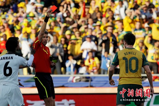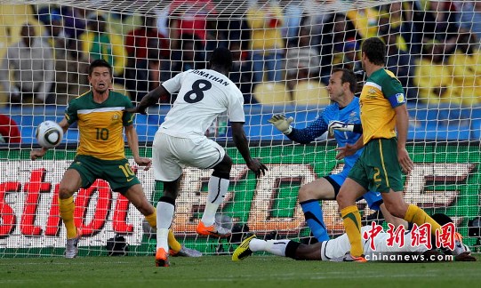 中新社勒斯滕堡6月19日電 首場慘敗的澳大利亞隊今天迎戰(zhàn)小組賽首輪唯一取勝的非洲球隊加納,在主力前鋒科威爾被罰下場的不利局面下,他們堅守住了1比1平的戰(zhàn)果。