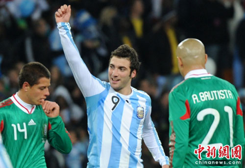 中新網(wǎng)6月28日電 今天凌晨2:30,南非世界杯1/8決賽再賽一場,阿根廷隊在約翰內(nèi)斯堡的足球城球場迎來了墨西哥隊。憑借特維斯一個明顯越位進球首開紀錄,隨后伊瓜因和特維斯各進一球,以3-1擊敗墨西哥,晉級八強。