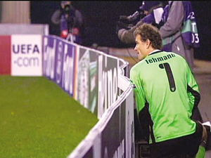然而在這場比賽中,卻發(fā)生了令人瞠目結(jié)舌的一幕。原來就在這場生死戰(zhàn)的比賽進(jìn)行過程中,斯圖加特40歲的主力門將、前德國頭號國門萊曼,突然離開其鎮(zhèn)守的球門,接著翻過球門后的廣告牌,然后迅速選擇一個(gè)在裝滿攝像與攝影設(shè)備的箱子邊蹲下身,這個(gè)可疑且神秘的動(dòng)作持續(xù)了數(shù)十秒,萊曼才起身來到球門邊。巧合的是,萊曼剛回到球門前,對方就發(fā)動(dòng)了一次進(jìn)攻。負(fù)責(zé)轉(zhuǎn)播這場比賽的天空體育電視臺的攝像機(jī)捕捉到了這一細(xì)節(jié),但由于萊曼的動(dòng)作被箱子擋住,因此無法確切拍攝到萊曼到底在干什么。不過賽后,德國著名的圖片報(bào)根據(jù)拍攝的照片和錄像回放來分析,萊曼十有八九是突然內(nèi)急,于是直接在廣告牌下借助箱子的遮擋方便了一下。