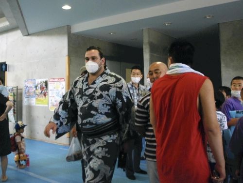 中新網(wǎng)8月15日電 據(jù)日本新華僑報(bào)報(bào)道,日本巖手縣八幡平市許多孩子今天摩拳擦掌,躍躍欲試地要和心目中崇拜的大相撲較量一番。誰料,在巖手縣八幡平市舉辦的“大相撲夏季巡業(yè)”活動(dòng)場(chǎng)上,出現(xiàn)了一個(gè)又一個(gè)戴著口罩的大相撲。原來,前來參加活動(dòng)的相撲中有6人患了疑似新型流感。據(jù)了解,這也是日本相撲界中第一次出現(xiàn)集體疑似新型流感患者。