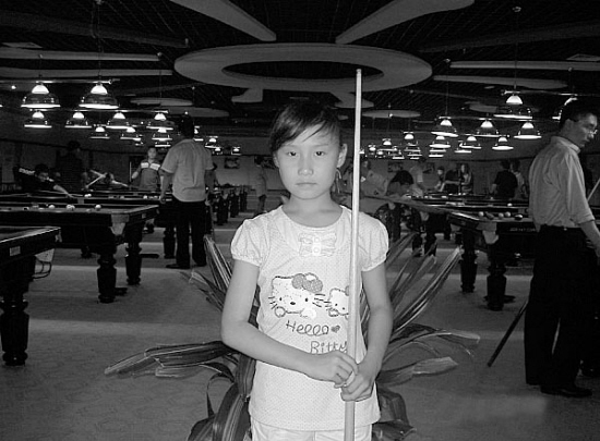 “幾年前,我自己開(kāi)了一家臺(tái)球房。我自己也喜歡打臺(tái)球,女兒經(jīng)常來(lái)玩,拿起球桿也打兩下,我這一看,很有天賦啊!就自己教他”。父親,就是女兒的啟蒙教練。