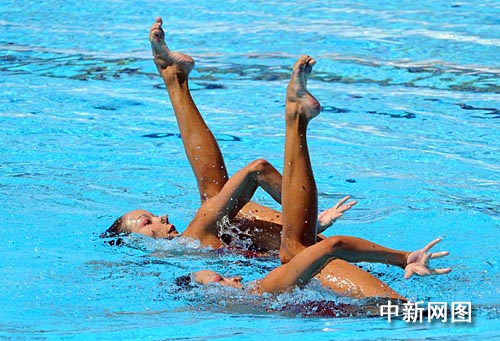 中新網羅馬七月二十一日電 (記者 宋方燦)“世界上最美的腿”二十一日在游泳世錦賽花樣游泳賽場上大放異彩。蔣文文/蔣婷婷這對雙胞胎姐妹在雙人技術自選的比賽中里表現出色,雖然遭遇個別裁判的低分“照顧”,但仍輕取一枚銅牌。俄羅斯組合奪得金牌,西班牙選手繼續(xù)名列第二。