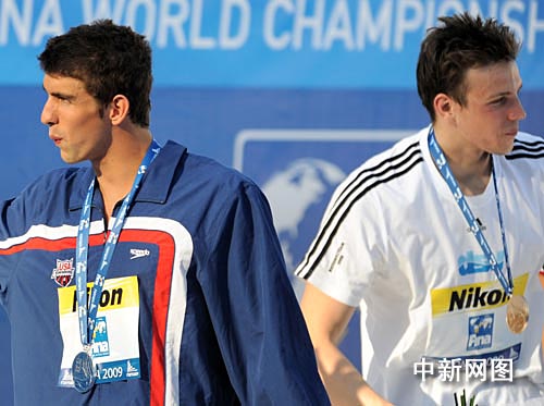 中新社羅馬七月二十八日電 (記者 宋方燦)北京奧運會的八金神話,已經(jīng)成為“飛魚”菲爾普斯的不可承受之重。在靠隊友的神奇發(fā)揮而保住男子四乘一百米接力的金牌后,在個人的第一個羅馬世錦賽項目上,他終于敗下陣來,被德國選手比德爾曼輕松擊敗,結(jié)束了近四年的不敗記錄。