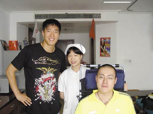 多方打聽了解到的情況是,本周四,劉翔穿著黑色T恤,頭戴鴨舌帽,悄悄進入醫(yī)院。因為同是上海運動員,又是老朋友,劉翔和湯淼聊得很開心。劉翔先仔細了解了湯淼的康復情況,鼓勵他積極配合醫(yī)生治療,以爭取好的結(jié)果。劉翔此行相當?shù)驼{(diào),只在病房呆了十分鐘就匆匆離去,不過走之前,他還是滿足了湯淼的主治醫(yī)師、護士合影留念的要求。