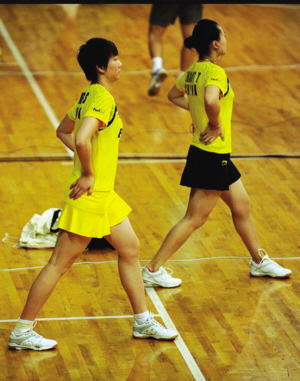 網(wǎng)球場(chǎng)上女選手穿著短裙打球已經(jīng)蔚然成風(fēng),羽毛球場(chǎng)上的美少女們還處于“遮遮掩掩”的狀態(tài),穿裙子比賽的遠(yuǎn)遠(yuǎn)少于穿褲裝的。不過(guò)也有勇于“嘗試”的,昨日中國(guó)隊(duì)里的女雙組合張亞雯和趙婷婷、成淑和趙蕓蕾都穿上了裙裝——張亞雯、趙婷婷穿的是黑衣紅裙,成淑、趙蕓蕾則是黃色裙子。不知是否是穿著裙裝更利落,兩對(duì)組合都輕松挺進(jìn)女雙八強(qiáng)。