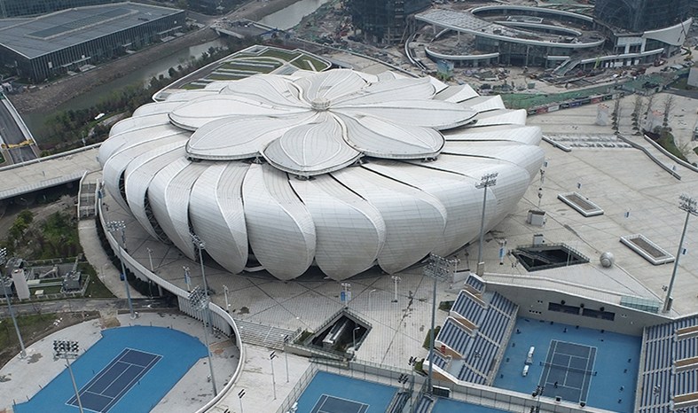 杭州奧體中心網(wǎng)球中心俗稱(chēng)“小蓮花”,為亞運(yùn)會(huì)網(wǎng)球項(xiàng)目比賽場(chǎng)館及訓(xùn)練場(chǎng)館,位于杭州市濱江區(qū)、杭州城市新中心,距離亞運(yùn)村約3公里。場(chǎng)館用地面積3.05萬(wàn)平方米,建筑面積523000平方米,座席數(shù)約10000個(gè)。