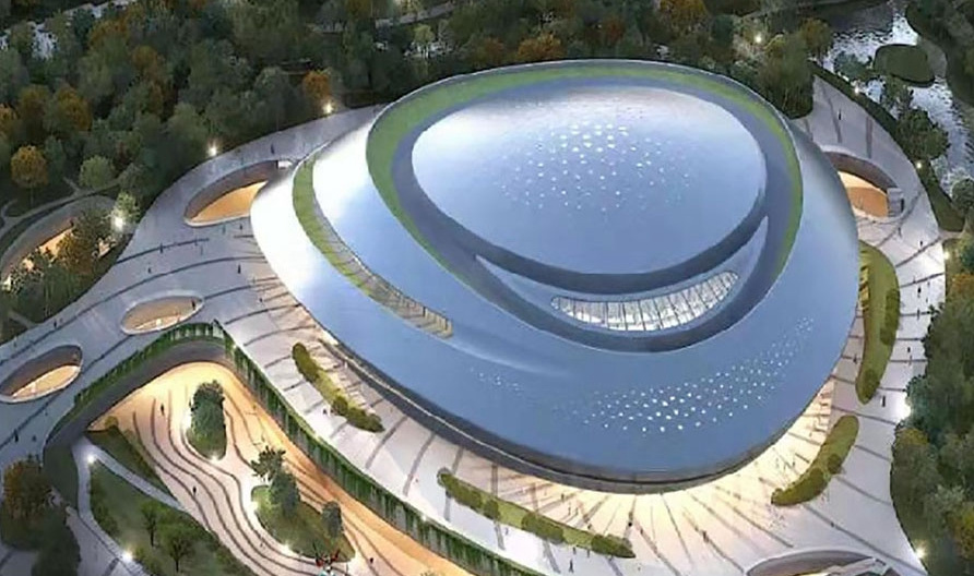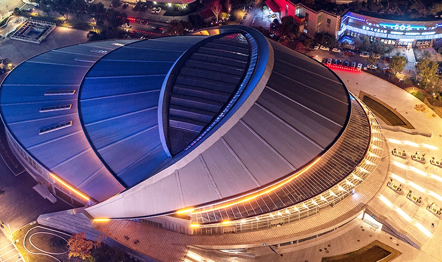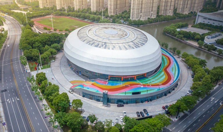 紹興奧體中心體育館為亞運(yùn)會(huì)籃球項(xiàng)目比賽場(chǎng)館,位于紹興市越城區(qū),在亞運(yùn)村東南方向且相距約38.8公里??偨ㄖ娣e72010平方米,觀眾席位數(shù)9552座。場(chǎng)館圓形的外殼,規(guī)則的銀灰色流線(xiàn)型線(xiàn)條,像是江南水鄉(xiāng)常見(jiàn)的河蚌。