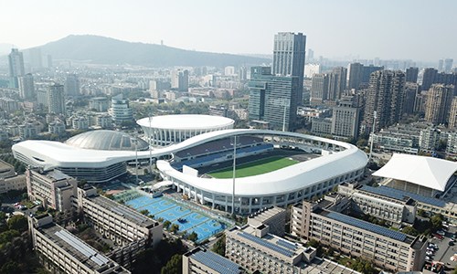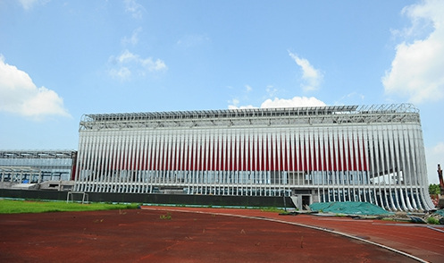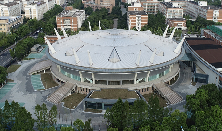 浙江大學(xué)(紫金港校區(qū))體育館為亞運(yùn)會(huì)籃球項(xiàng)目比賽場(chǎng)館,位于杭州市西湖區(qū),在亞運(yùn)村西北側(cè)且相距約22公里。該場(chǎng)館位于浙大紫金港校區(qū)內(nèi),東側(cè)為風(fēng)雨操場(chǎng),北側(cè)為游泳館,空間高度整合,幾個(gè)場(chǎng)館形成一個(gè)綜合性體育場(chǎng)區(qū)。總建筑面積16954平方米,觀眾席位數(shù)4821座。