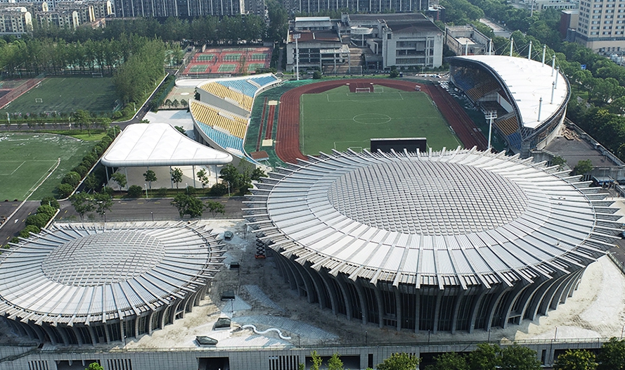 濱江體育館為亞運(yùn)會(huì)羽毛球項(xiàng)目比賽場(chǎng)館及訓(xùn)練場(chǎng)館,位于杭州市濱江區(qū),含主比賽館及熱身館。總建筑面積58224平方米,觀眾席位數(shù)3900個(gè)。