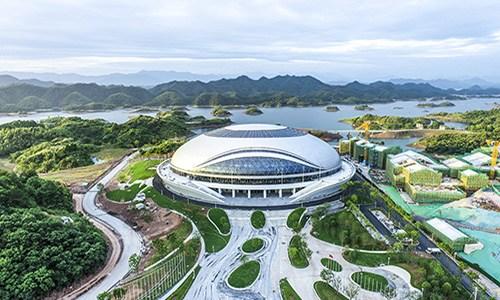 淳安界首體育中心自行車(chē)館為亞運(yùn)會(huì)場(chǎng)地自行車(chē)項(xiàng)目比賽場(chǎng)館,位于杭州市淳安縣界首鄉(xiāng),地處亞運(yùn)比賽項(xiàng)目中心位置,場(chǎng)館包含比賽及熱身場(chǎng)館。項(xiàng)目基地山環(huán)水繞,庫(kù)灣眾多,山體平緩,村莊零星散落,環(huán)境優(yōu)美,生態(tài)優(yōu)良。總建筑面積24282平方米,觀眾席位數(shù)3000個(gè)。