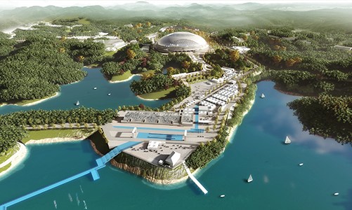 富陽(yáng)水上運(yùn)動(dòng)中心為亞運(yùn)會(huì)賽艇、皮劃艇(含靜水、激流回旋)項(xiàng)目比賽場(chǎng)地及訓(xùn)練場(chǎng)地,位于杭州市富陽(yáng)區(qū)北支江南岸,地處亞運(yùn)村西南側(cè)且相距約36公里,含賽事管理、場(chǎng)館管理、觀眾服務(wù)和新聞媒體等功能。賽艇、皮劃艇(靜水)項(xiàng)目總建筑面積64013平方米,皮劃艇(激流回旋)項(xiàng)目總建筑面積3700平方米,觀眾席位數(shù)3000個(gè)。