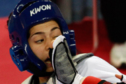 臺(tái)球女子美式8球單打亞軍、韓國選手金佳映,參加頒獎(jiǎng)儀式前,饒有興致地向禮儀小姐學(xué)習(xí)儀態(tài)。