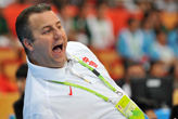 21日晚,中國男籃以76:66戰(zhàn)勝韓國,比賽中主帥鄧華德在場(chǎng)邊激情執(zhí)教。